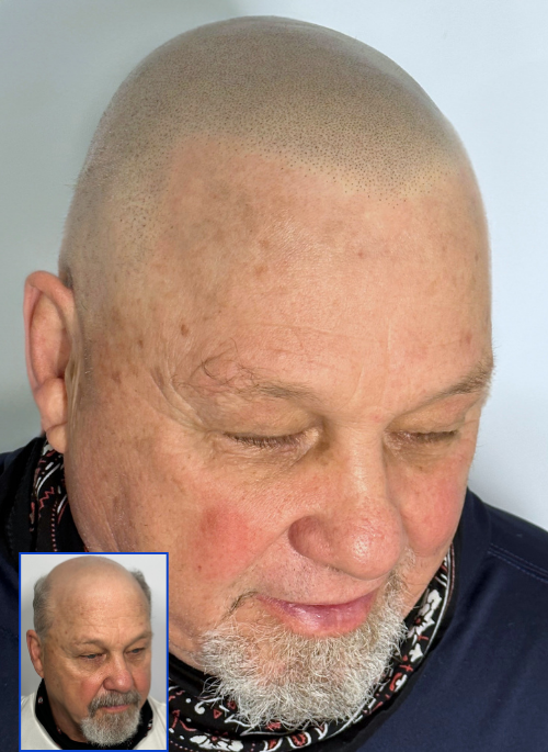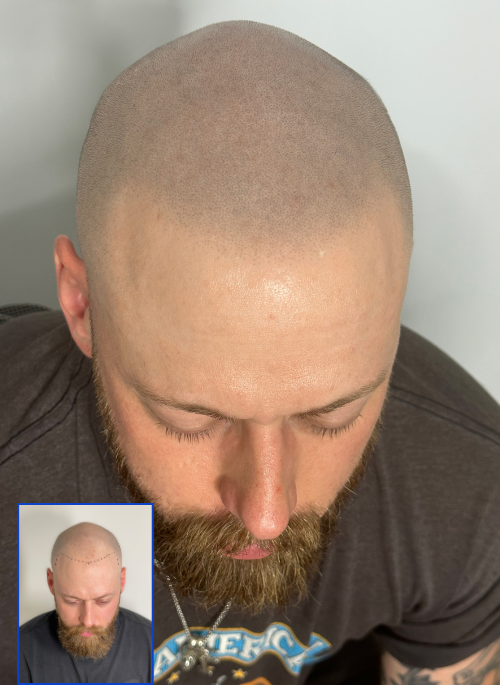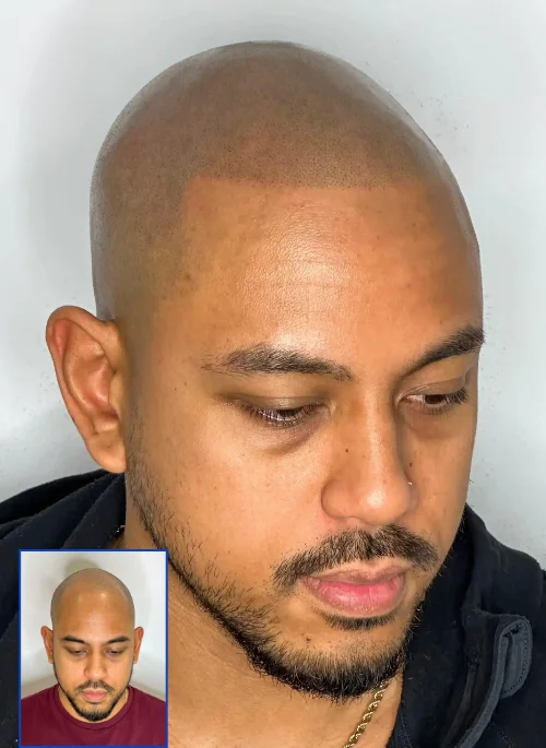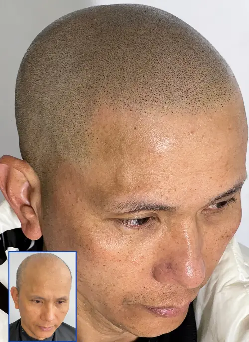 Our skilled artists meticulously designed a hairline that complemented Dom’s facial features and blended seamlessly with his existing hair. Through precise pigment implantation, they replicated the appearance of natural hair follicles, creating a fuller, thicker look.