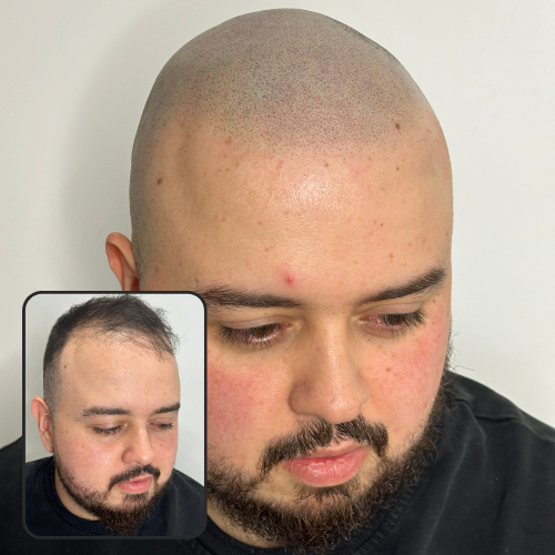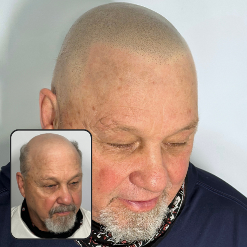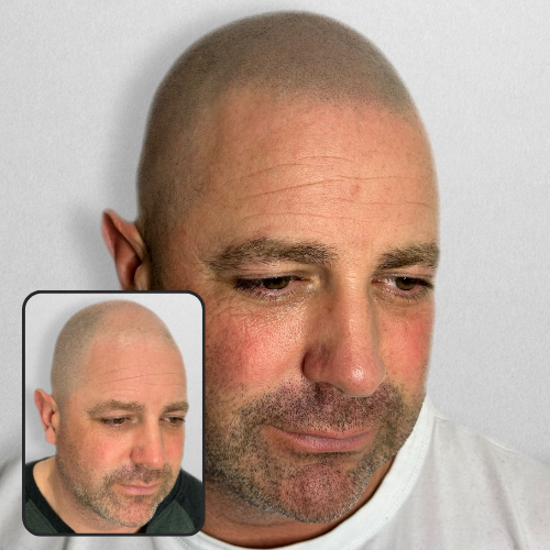 Ideal for clients with male pattern baldness, including Norwood 6–7 hair loss, bald head SMP restores structure to the face by designing a customized, age-appropriate hairline that complements your features. The result is a realistic, low-maintenance look without surgery, downtime, or ongoing treatments.